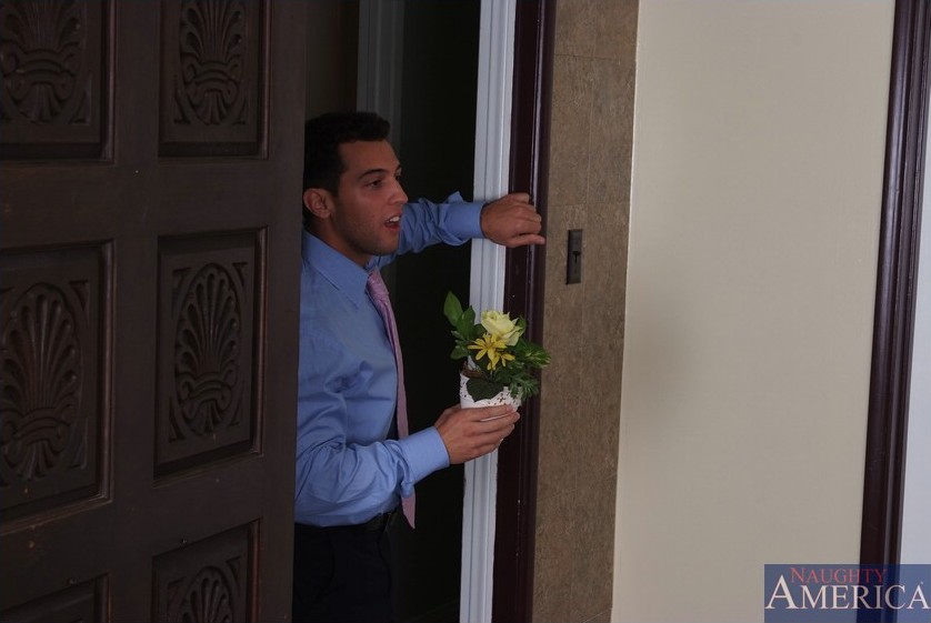 Abbey Brooks gets completely naked and gets her tight pussy fucked really hard.