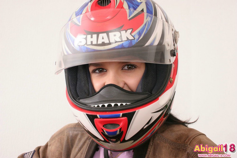 Cute brunette teen Abigail 18 takes off her clothes on the bed and shows off.