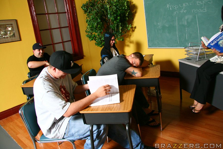 Alexis Amore spices a boring lecture with a striptease and a passionate sex scene.