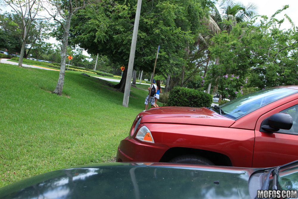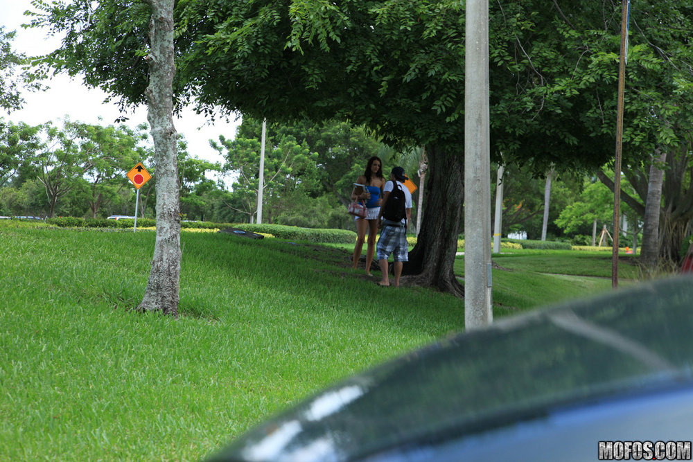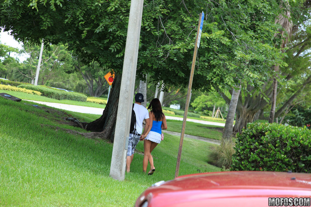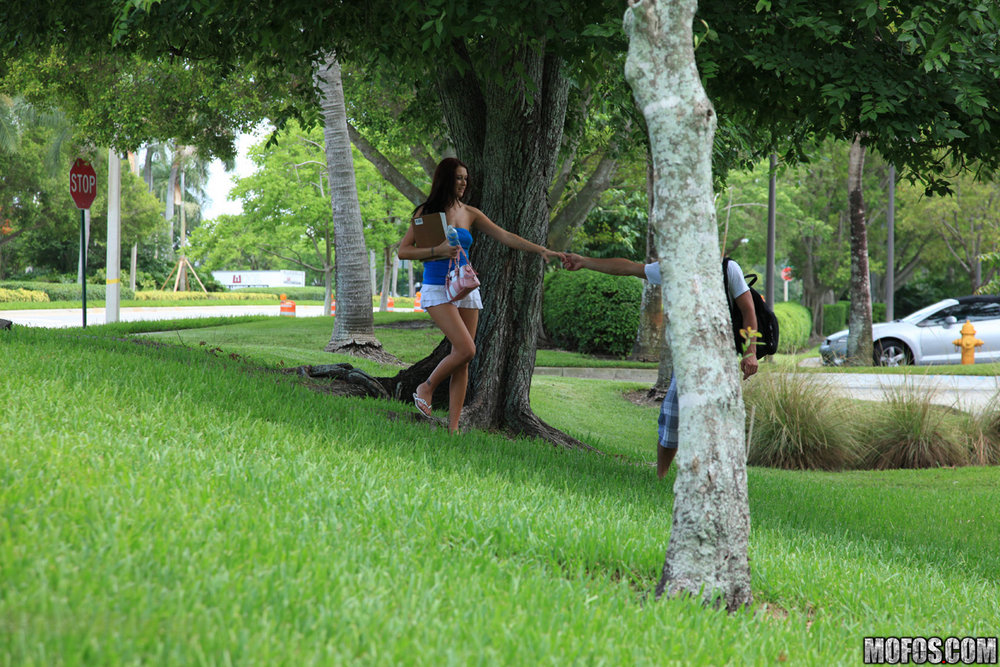 Alexis Grace takes her shorts off outdoors and takes a ride on big hard meat pole.