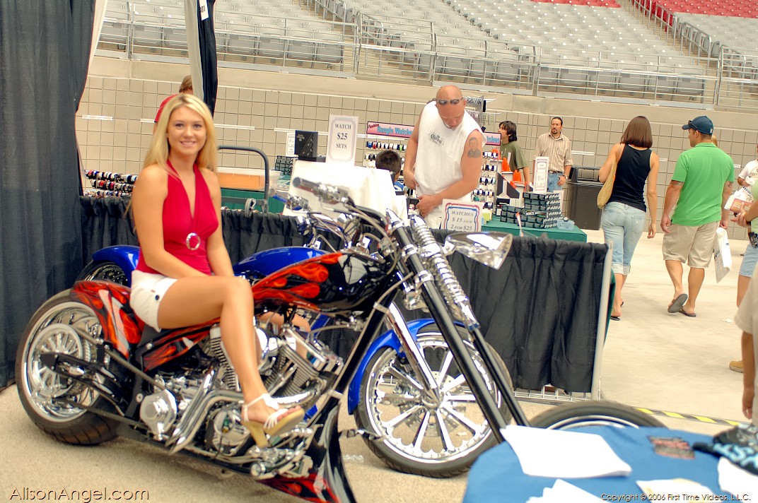 Alison Angel paid a visit to a show in order to enjoy posh cars and her naked body.