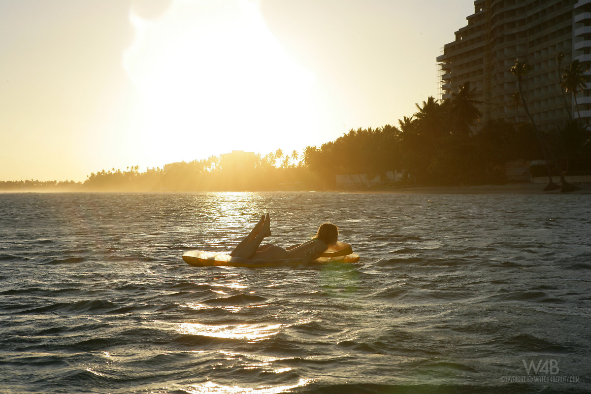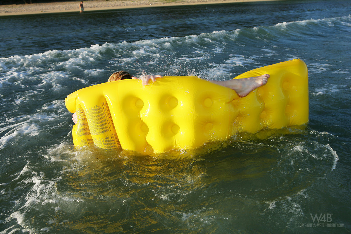 Young babe enjoying the waves during a beautiful day, she shows her natural boobies with pleasure