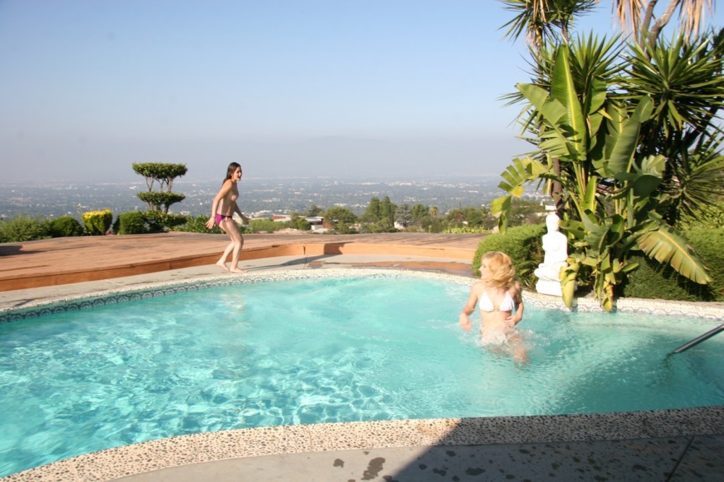 Ally Ann Tory Lane and Kandi Milan strip outdoors on the balcony and have sex.