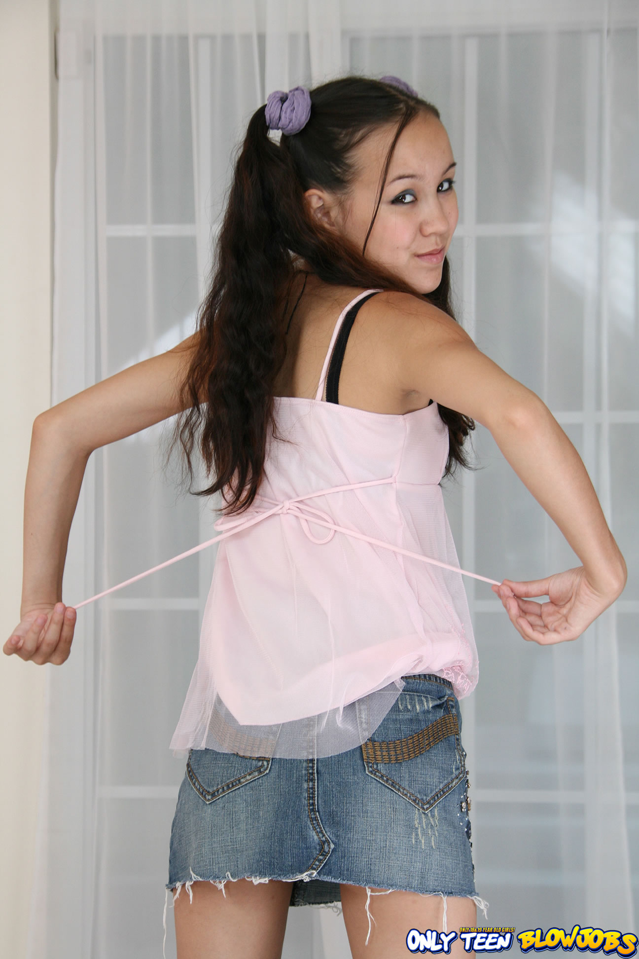 Alluring teen gal Amai Liu strips her mini skirt and shows her hungry wet pussy.