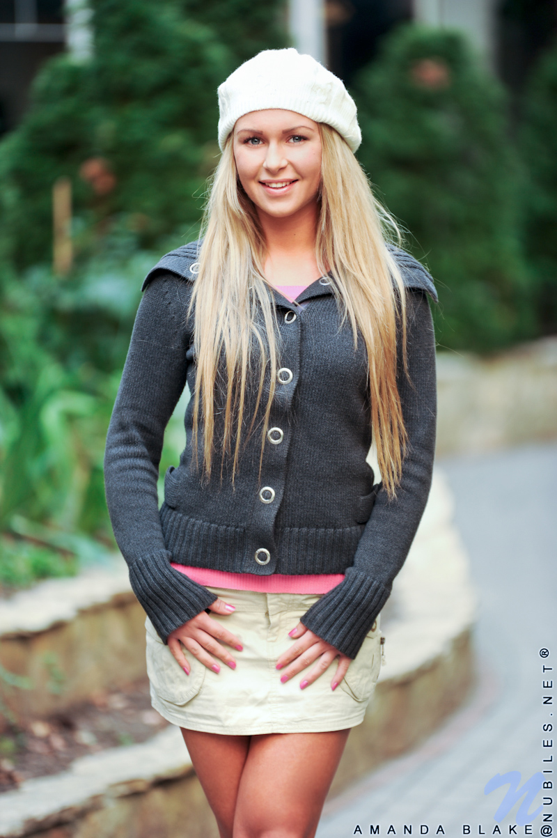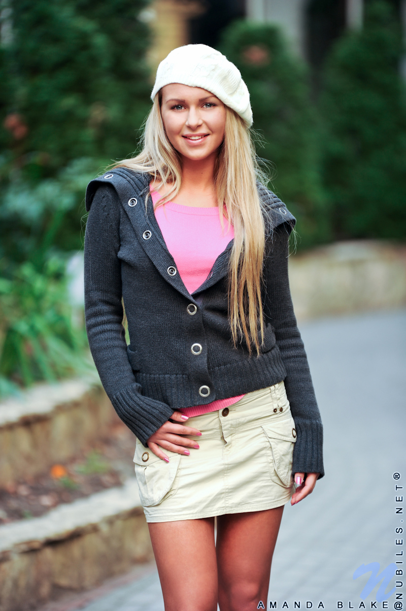 Smoking hot blonde gal Amanda Blake strips outdoors and shows her tight ass.