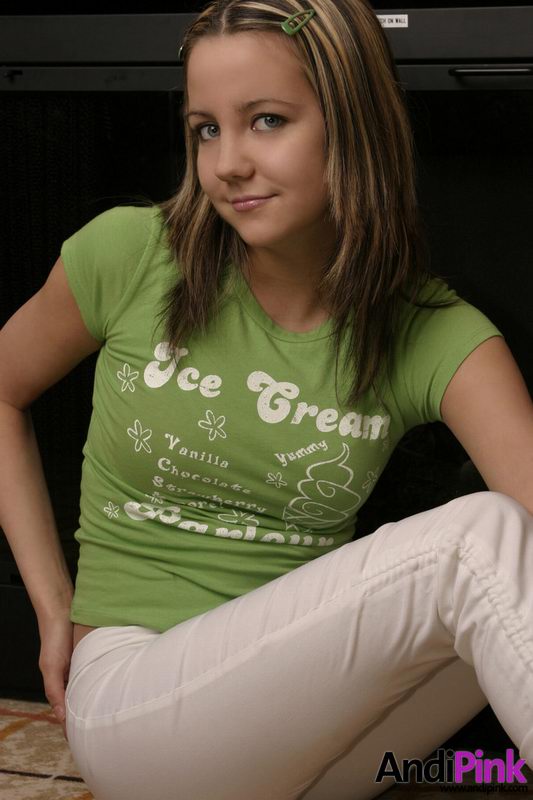 Cute fuckable teen bunny Andi Pink takes off her white panties and fingers hr cunt.