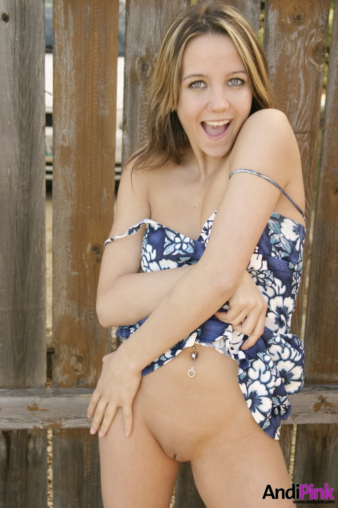 Hot teen chick Andi Pink takes off her clothes and shows us her hot tight ass.