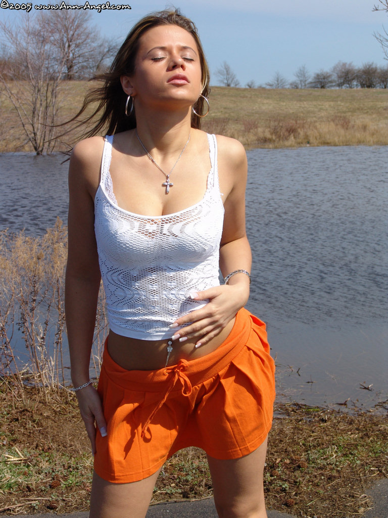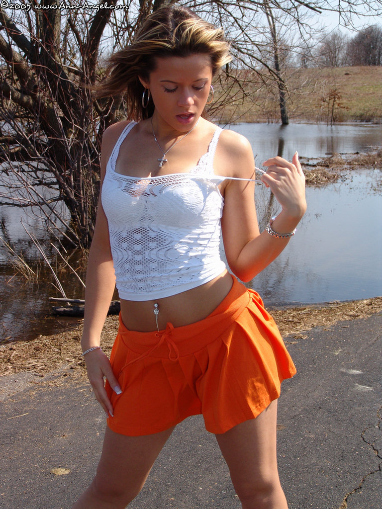 Ann Angel takes her cute orange skirt off and shows us her amazing hot booty.