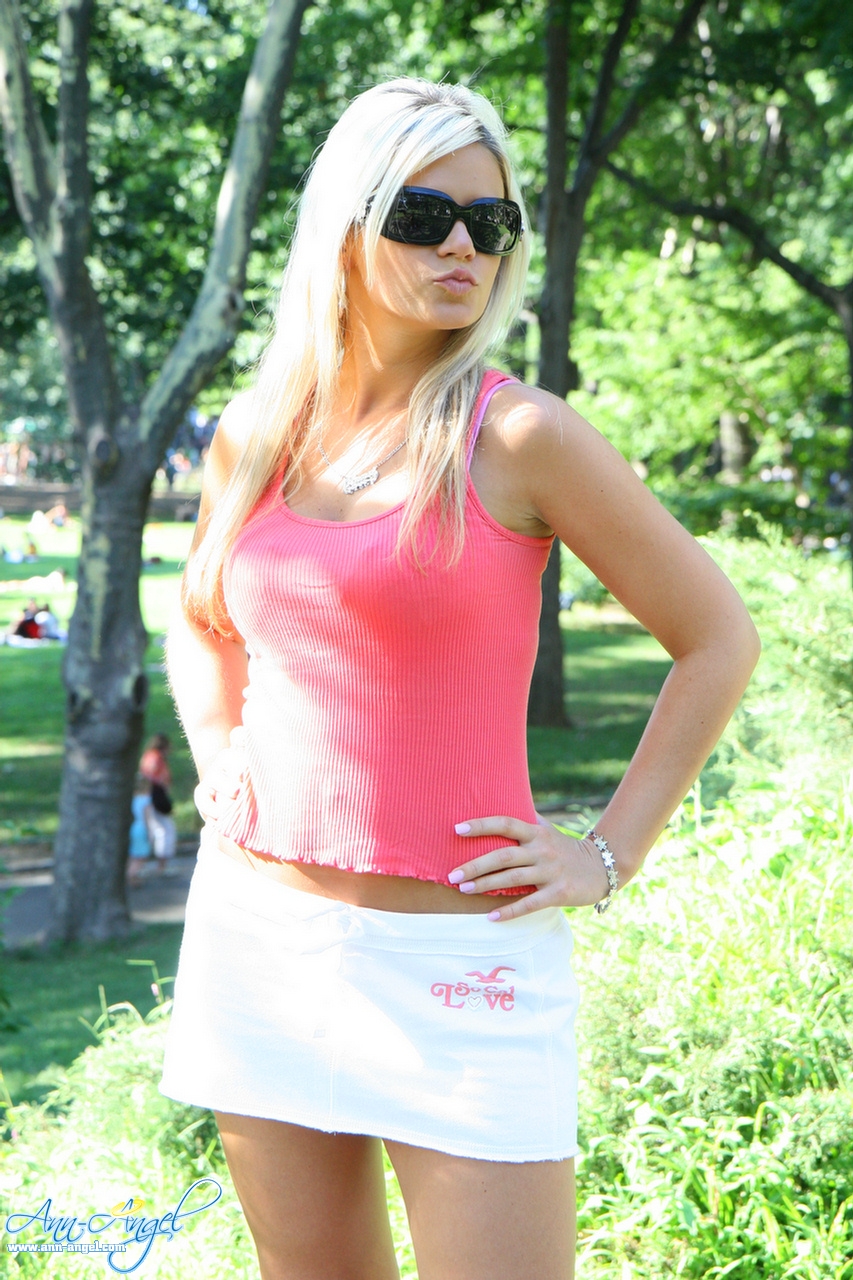 Ann Angel takes her slutty mini skirt off outdoors and shows us her amazing ass.