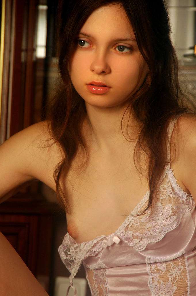 Anna S takes her sexy white lingerie off and teases us with her perky little breasts.