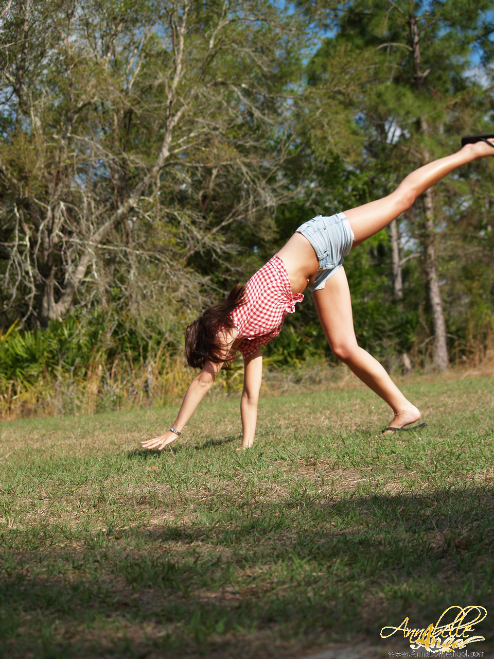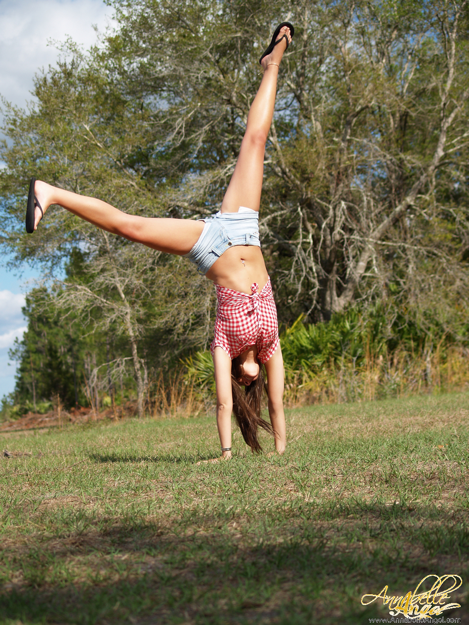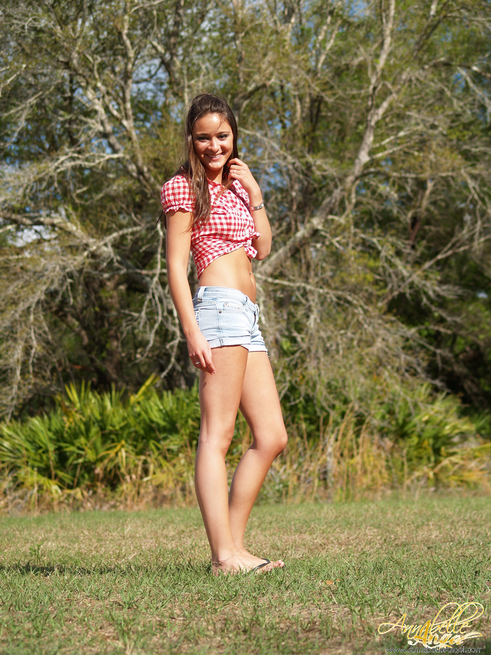 Annabelle Angel takes her slutty denim shorts off and shows us her amazing booty.