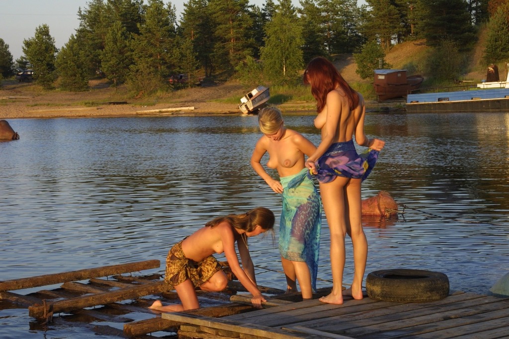 Ashanti A Koika and Julia F strip together outdoors and show their hot bodies.