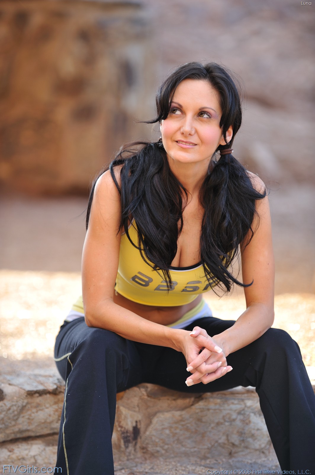 Hot gym girl Ava Addams taking her t-shirt off outdoor and showing her great boobs.