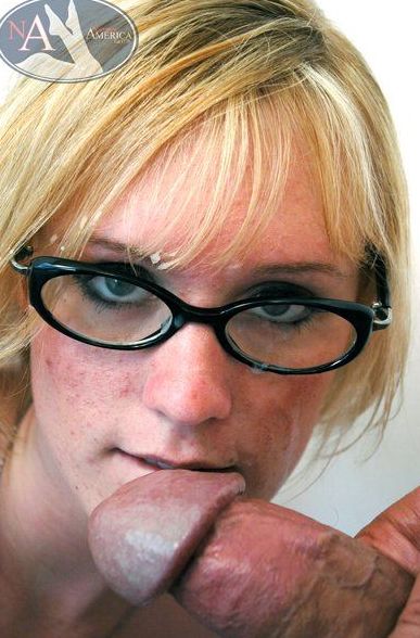 Naughty blonde Bailey Brooks wearing sexy glasses getting her shaved pussy licked.