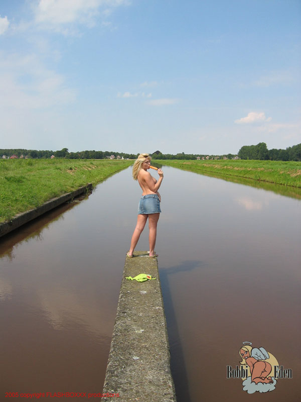 Bobbi Eden takes her slutty skirt off and then fingers her hungry shaved muff.