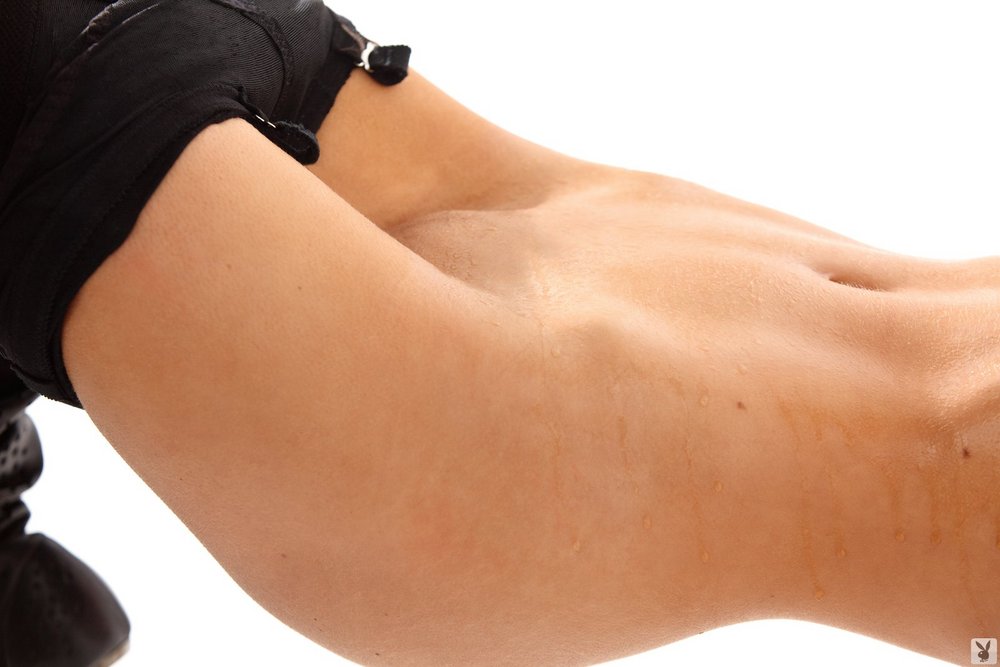 Skinny blonde poses in black lingerie and boots when she decides to undress on camera