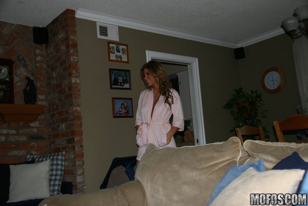 Brooklyn Lee takes her robe off in front of the camera and blows a huge dong.