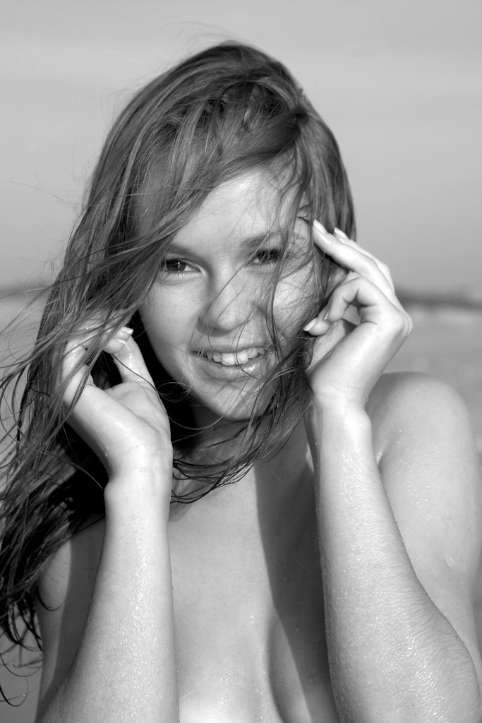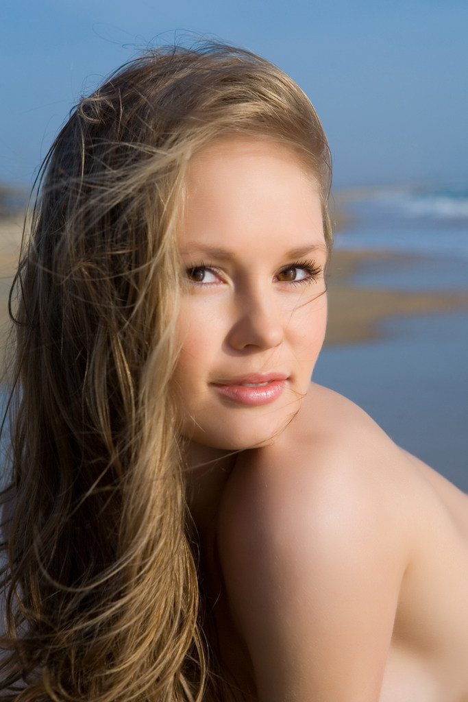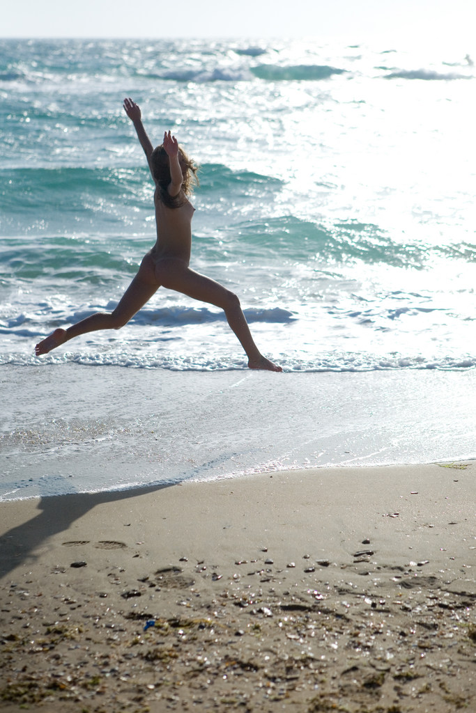 Caesaria A takes her bikini off outdoors on the beach and shows her little jugs.