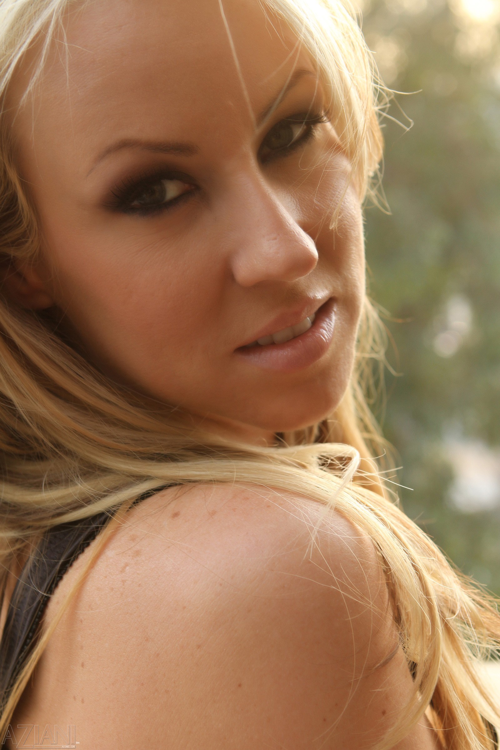 Carolyn Reese fingers her clean shaved pussy and caresses her tits while smoking.