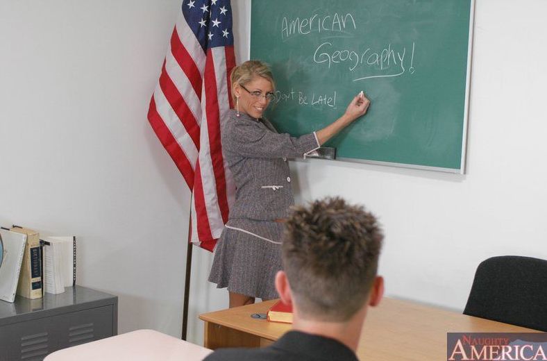 Hot tanned blonde teacher Chelsea Zinn getting shagged by sexy young student.