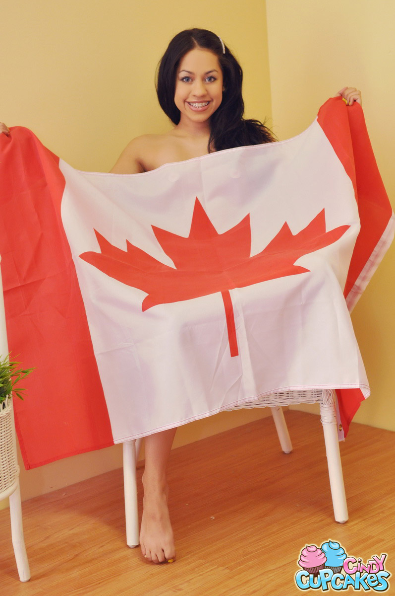 Frisky Cindy Cupcakes spices her passionate striptease dance with Canadian flag.