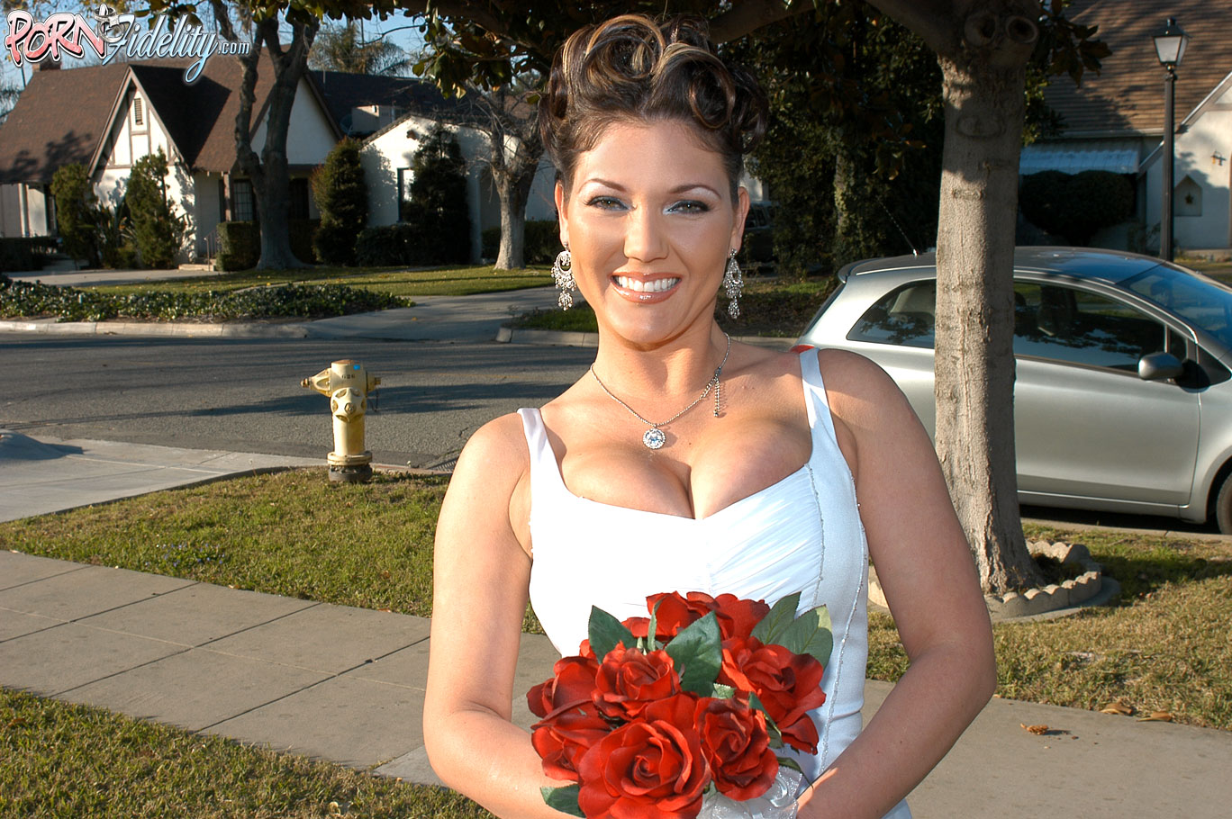 Gorgeous bride Claire Dames takes a big erected dick of her groom into her holes.