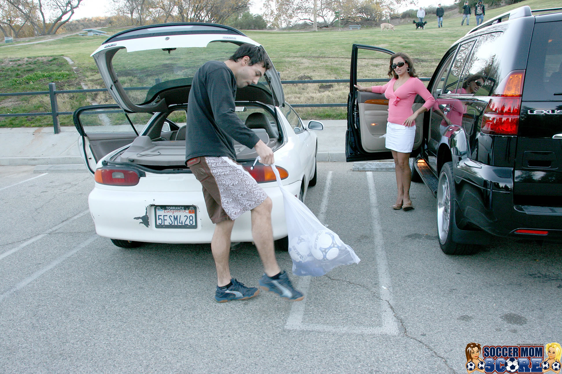 Horny brunette soccer mom Claudia Valentine gets fucked by younger hung dude.