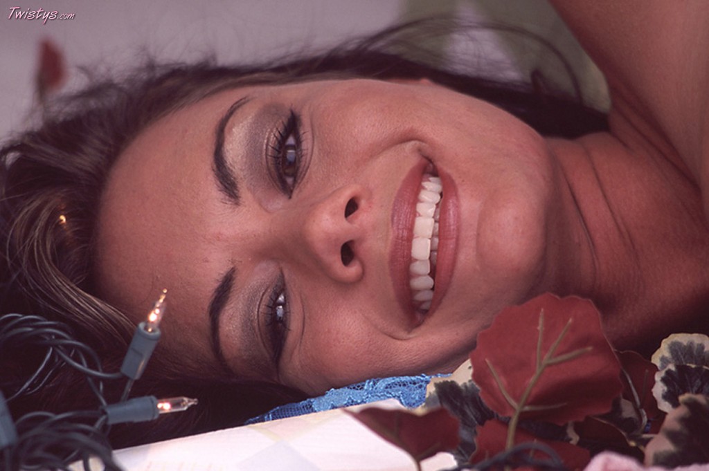 Busty brunette chick Crissy Moran strips her blue jeans and shows her tight ass.