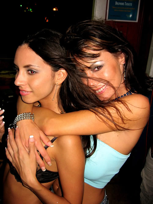 Slutty dyke gals Crissy Moran and Mindy Vega got drunk and strap in the club.