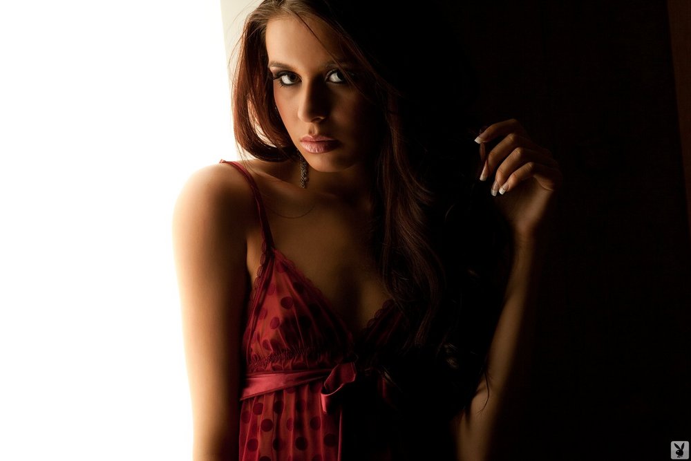 Alluring young hottie in red wants to reveal her small boobies and her tight kitty right away