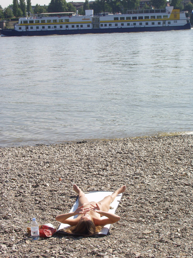 Hot blonde chick Daggy Jane walks down the beach fully nude and shows her body.