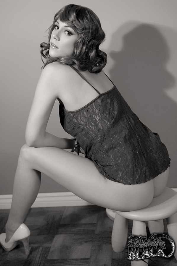 Divine Dakota Black caresses her yummy tits, slit and butt on black-and-white photos.