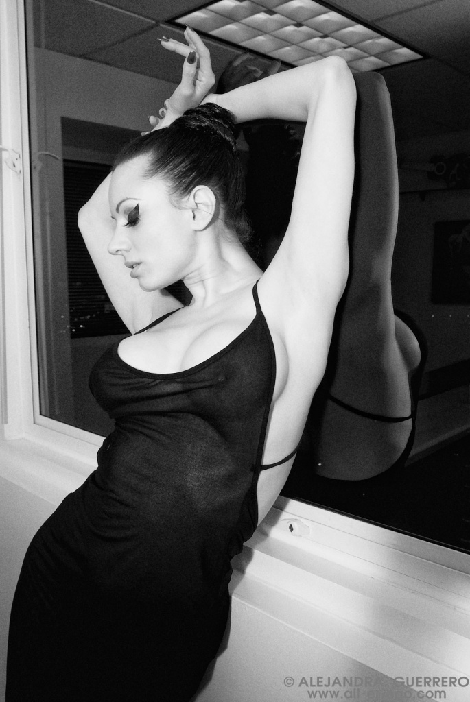 Naughty Darenzia poses on camera to show her body on black-and-white photos.