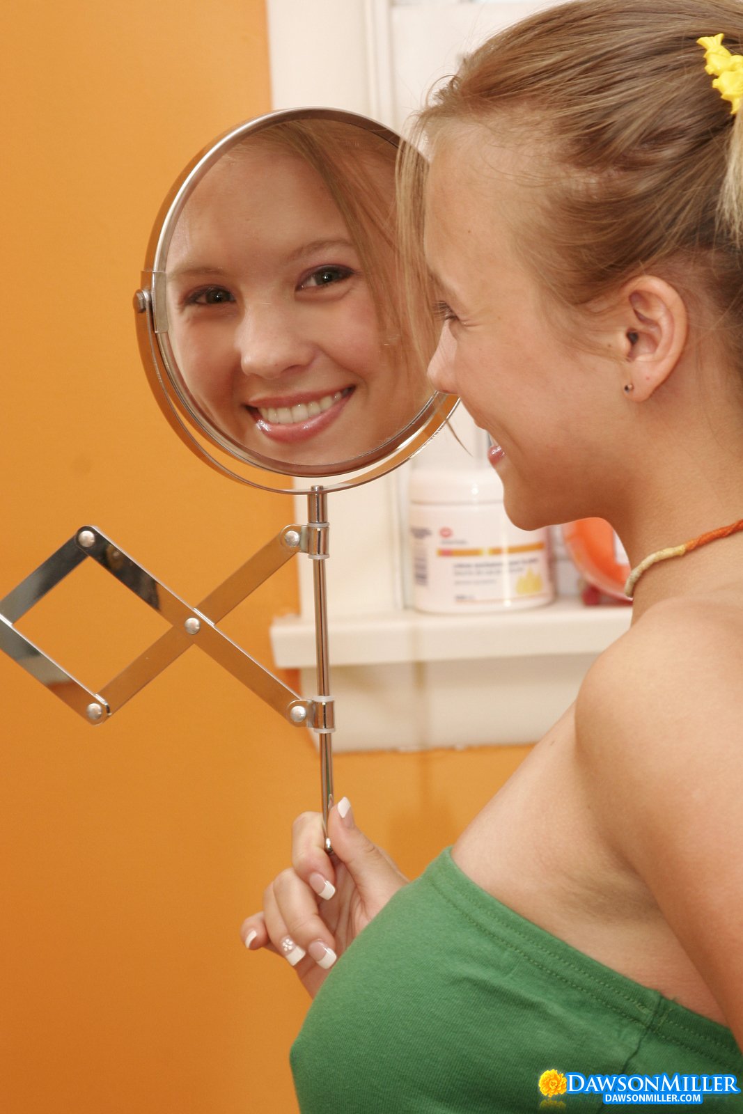 Playful Dawson Miller shows how a naughty girl can please herself in a bathroom.