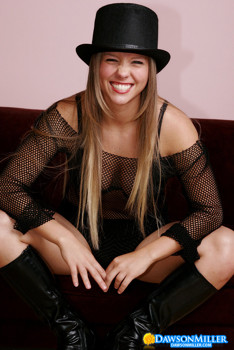 Naughty Dawson Miller poses in a hot outfit which does not hide her sexuality.