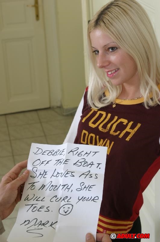 Debbie White pulls her tight black pants off and gets her hungry cunt screwed.