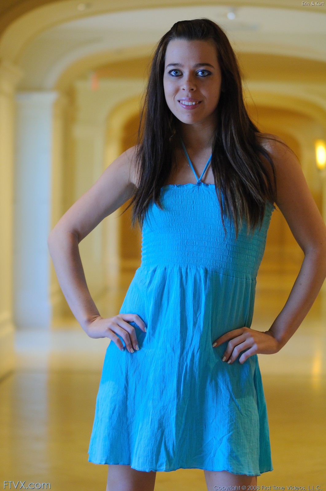 Erin Taylor drops down her sexy blue dress and shows her perfect tiny booty.
