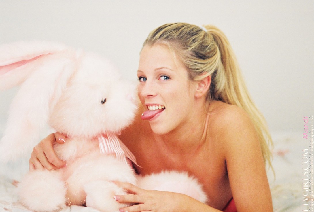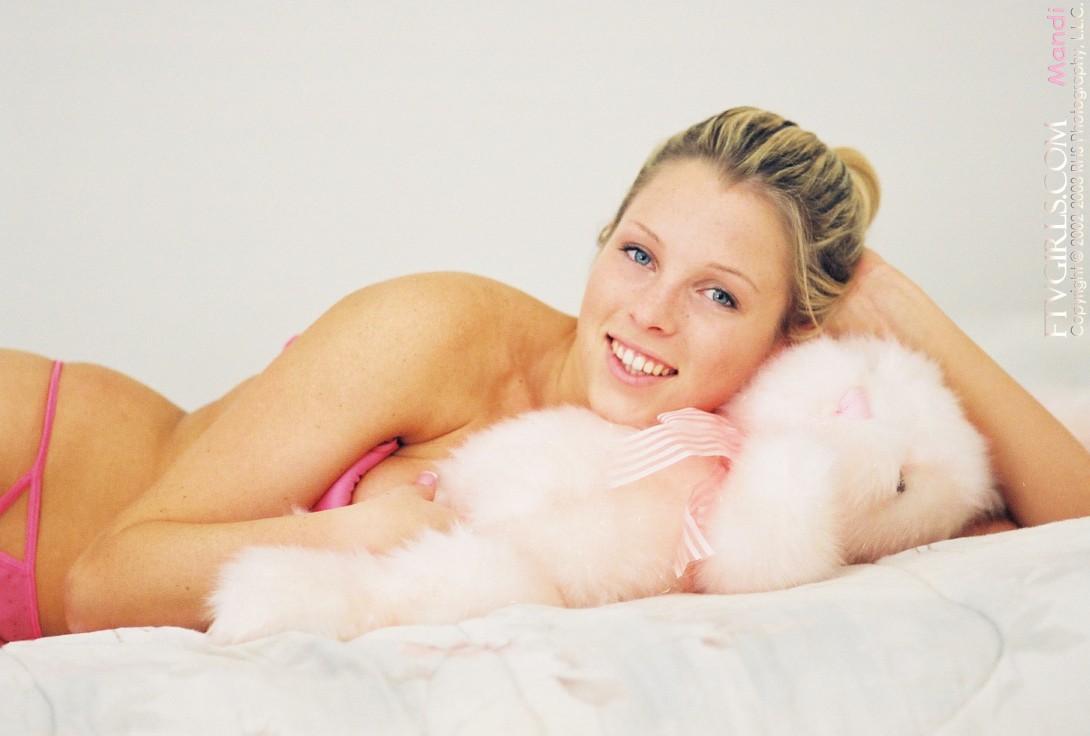 Fallon Summers poses in her sexy pink bra and pink panties with her fluffy bunny.