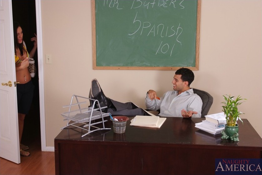 Gracie Glam, a lazy student, uses her body to pass an exam and to please her teacher.