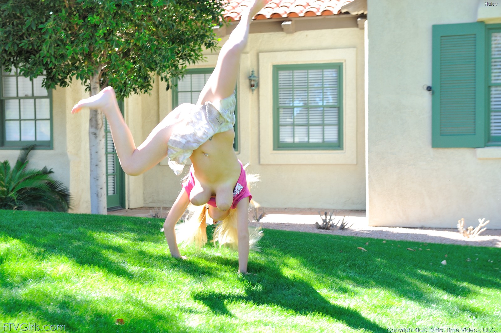 Haley Cummings has some naked fun in the sun out in her garden in the afternoon.