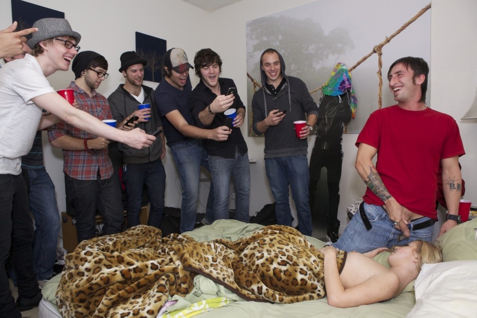 Haley Sweet and Casi James strips her lingerie on the bed and gets screwed wildly.