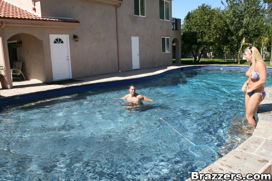 Heidi Mayne washes her body at a pool and enjoys wild sex games with her fucker.