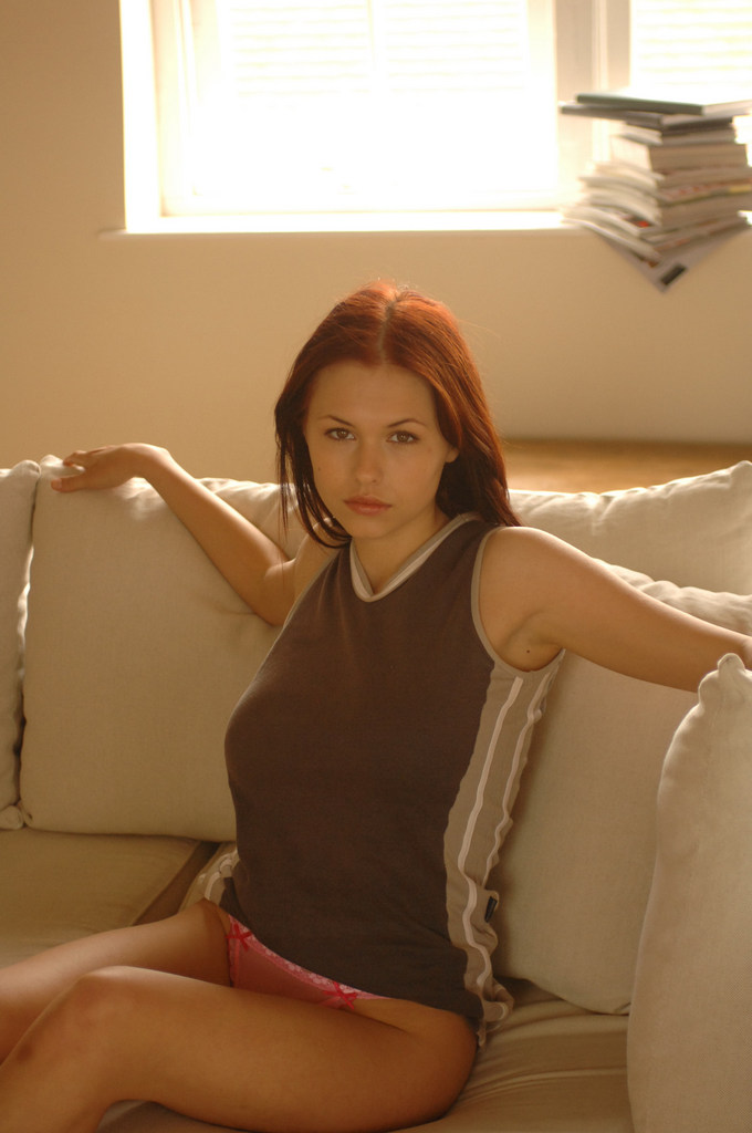 Iga Wyrwal takes her underwear on the sofa and then plays some video games.