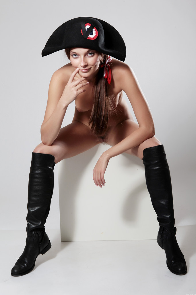 Indiana A takes her slutty pirate outfit off and teases us in sexy high boots.