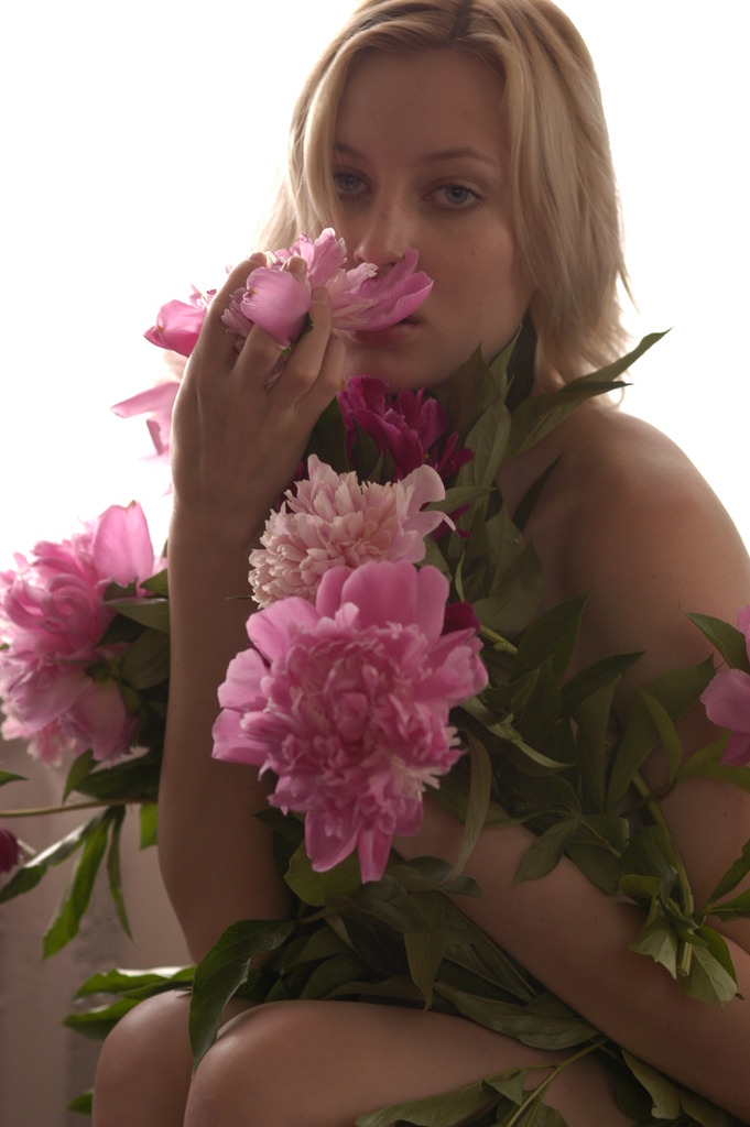 Superb young blonde Jamie Narkiss adores her bare body while posing in front of the mirror.