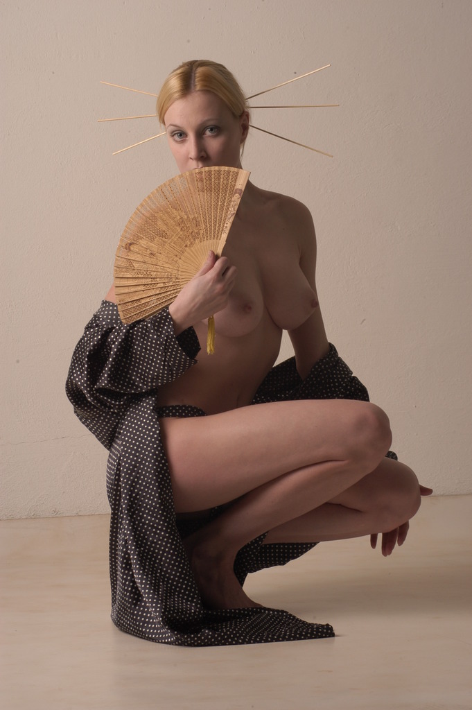 Jamie Narkiss takes her black robe off and shows us her perky little breasts.