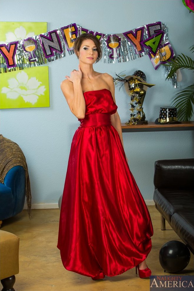 Jenni Lee takes her sexy satin gown off and rides her lover's big hard cock.