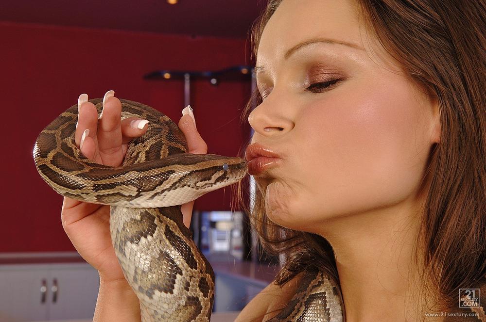 Jeny Baby strips her sexy lingerie for the camera and poses with a dangerous snake.