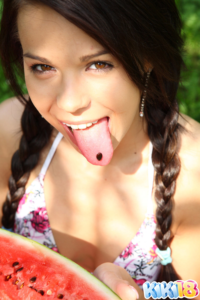 Jessica Koks fills her actions with sex and even eats a watermelon in a sexy way.