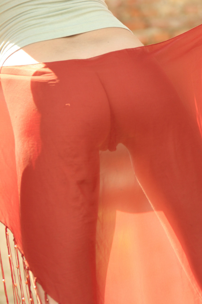 Julia I takes her sexy red skirt off outdoors and exposes her trimmed fanny.